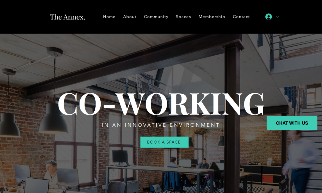 コワーキングスペース「The Annex」を想定。施設の雰囲気やサービス内容を視覚的に伝え、利用・問い合わせにつなげる。